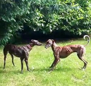 LUNA (rechts) – klein aber oho und kein Galgo wie man sieht 😊, hat über FFF ein Zuhause gefunden. Ihr Frauchen und ihre neue Freundin sind happy.