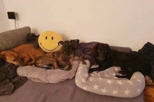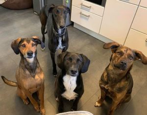 Man munkelt allerdings, dass die erwachsenen Hunde der Familie jetzt den Antrag stellen wollen, wieder auf der Vermittlungsseite unter „Zuhause gesucht“ vorgestellt zu werden.