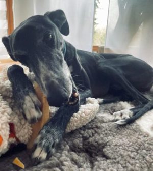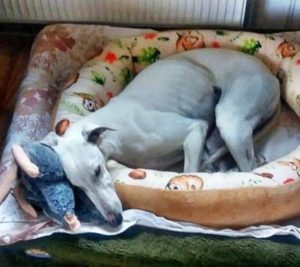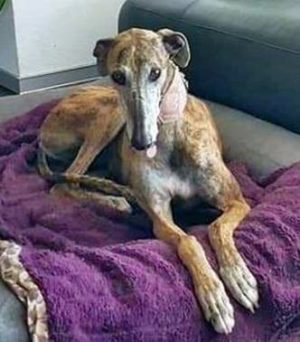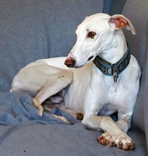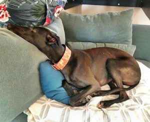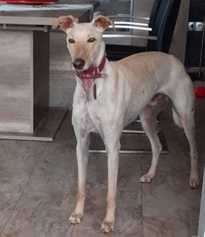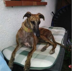 TINTO – Seine Familie schreibt: Endlich haben wir wieder einen Galgo als Familienmitglied, nachdem wir vor 2 Jahren unsere Alica von uns gehen lassen mussten. Menschen und Katzen freuen sich über TINTO. Stiller, verschmuster, freundlicher, bescheidener, ängstlicher Junge, der es nicht fassen kann, dass er auf weichen Kissen schlafen darf. Danke an FFF.