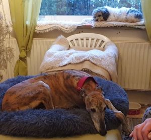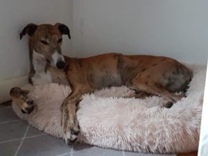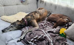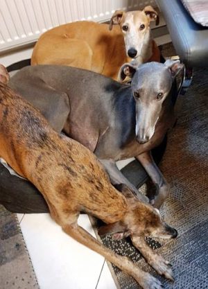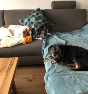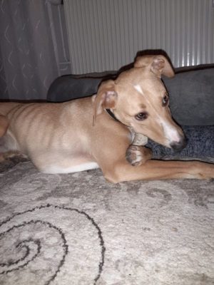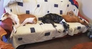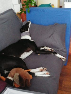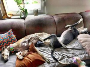 AXEL – Er ist zu 3 tollen Windis umgezogen. Das neue Rudel hat ihn super aufgenommen und auch gleich auf dem Sofa für ihn Platz gemacht.