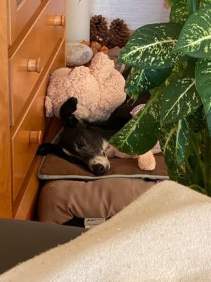 NELA belegt ein frei gewordenes Körbchen und tröstet so ihre neue Familie über den Verlust hinweg.