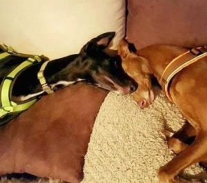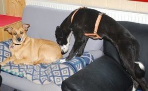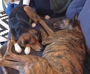 URKO (der Gestromte) ist zu Ex-FFF Nase Nelly auf die Couch gezogen…… und es hat zooom gemacht; die beiden Junghunde werden sicher seeehr viel Spass zusammen haben.