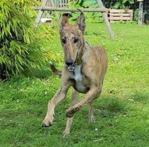 MORA hat allen Grund sich zu freuen. Lange hat sie auf ihr Zuhause gewartet. Nun hat sie ein Frauchen, welches immer zu Hause ist, einen großen Flitzegarten zum Toben und Windhundkumpels zum Spielen in der Nachbarschaft.