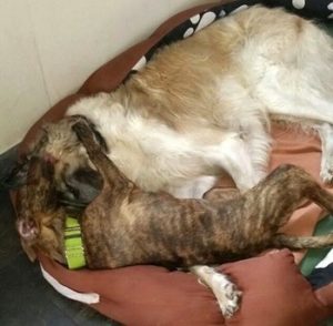 ALI und ROMANO zwei Hunde, die sich sehr mögen. Wie ein altes Ehepaar gehören sie zusammen und nun hat ihnen die Pflegestelle ermöglicht, wirklich für den Rest ihres Lebens zusammenzubleiben.